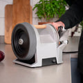 Graças ao seu design inovador e materiais selecionados, o nosso Afiador de Facas de Cozinha pode afiar a maioria das facas de cozinha. Nosso sistema de guia patenteado é compatível com lâminas de 12 mm a 60 mm de altura, até 5 mm de espessura e de comprimento ilimitado. A roda diamantada de grão fino afia todos os tipos de aço para a mais alta qualidade, e pode até afiar facas de cerâmica.